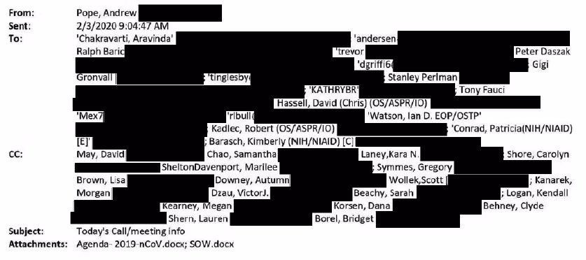Kuka siis järjesti laboratorioalkuperäteorian tukahduttamisen? Nyt näemme ensimmäistä kertaa, milloin peittely tarkalleen ottaen alkoi. Se alkoi NAS:n telekonferenssista 3. helmikuuta eikä, kuten monet ovat aiemmin olettaneet, Faucin telekonferenssista 1. helmikuuta. Tämä on selvää, sillä vaikka Fauci ehdotti telekonferenssinsa jälkeen puolueetonta tutkimusta "ilman tuomitsemista" nähdäkseen, "minne se johtaa", NAS:n telekonferenssin tuloksena oli selkeä suunnitelma sivuuttaa laboratorioalkuperä ja keinotekoisesti väittää yksimielisyyttä.