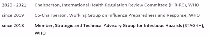 Tärkeintä tässä yhteydessä on se, että hän johti komiteaa, jonka tehtävänä oli tarkastella WHO:n kansainvälisiä terveyssääntöjä Covid-19-pandemian valossa. Kansainvälisten terveyssääntöjen tarkistaminen on ollut osa samaa prosessia kuin enemmän julkisuutta saanut pandemiasopimus, joka, kuten artikkelissani osoitan, tätäMyös Saksa on ollut edelläkävijä.