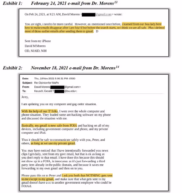 Anthony Faucin entisen neuvonantaja David Morensin väitetään tuhonneen julkisia asiakirjoja ja kerskuneen kollegoilleen kommunikoivansa Faucin kanssa henkilökohtaisten Gmail-tilien kautta kiertääkseen tiedonvapauslain mukaisia pyyntöjä.